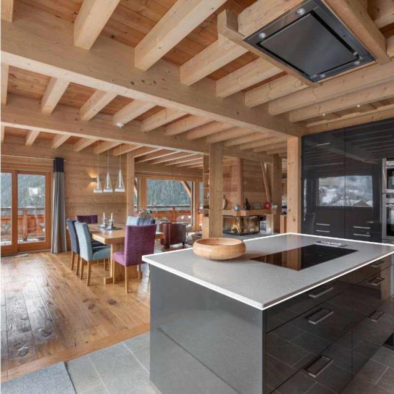 Chalets de Prestige : Profitez d’espaces généreux pouvant accueillir de 7 jusqu’à 18 personnes, équipés de jacuzzis, saunas, et offrant des vues spectaculaires sur les montagnes.