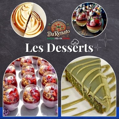 Au-delà des pizzas, Da Renato propose une carte variée de salades composées, snacks et plats méditerranéens inspirés de la cuisine familiale italienne : produits frais, recettes traditionnelles, assaisonnements justes. Les desserts maison viennent clore le repas sur une note sucrée : tiramisu, moelleux au chocolat, panna cotta… de quoi ravir les palais gourmands.