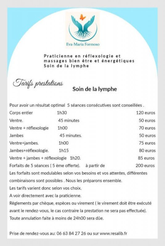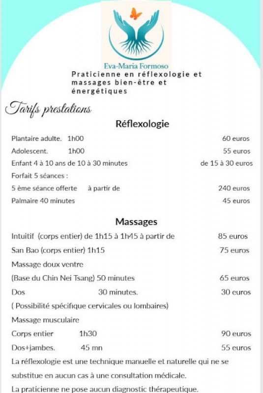 Eva-Maria Formoso s'est spécialisée dans plusieurs techniques de bien-être, notamment la réflexologie, le massage énergétique et lymphatique, ainsi que l'accompagnement holistique. Elle exerce principalement dans les villes de Cornier et Reignier, apportant son expertise à un grand nombre de personnes cherchant à retrouver un équilibre intérieur.