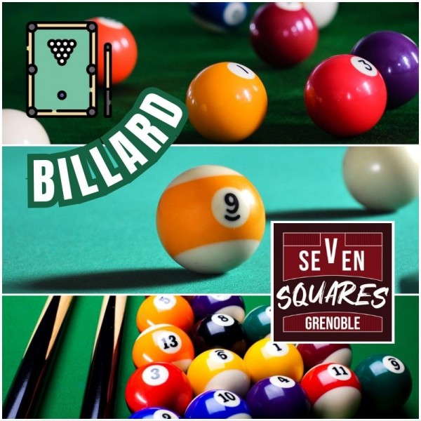 Au Billard du Seven Squares de Grenoble en Isère Rhône-Alpes, amusez-vous dans une ambiance cosy-chic et plaisir, et défiez vos amis. Centre commercial de Neyrpic de Saint-Martin-d'Hères.