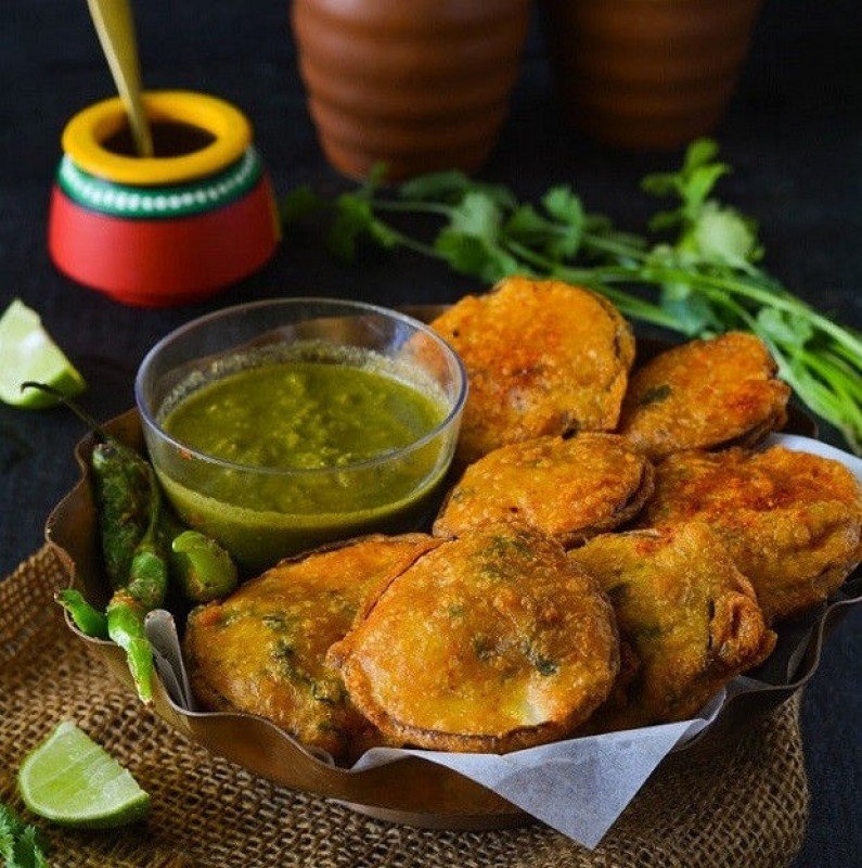Les Aloo Pakoras (beignets de pomme de terre avec farine de pois chiches).