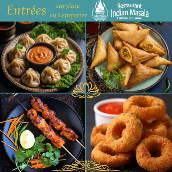 Retrouvez dans le Chablais, à Douvaine, à proximité de Thonon, Sciez sur Léman et Saint Cergues, la large gamme d'entrées, sur place ou à emporter (feuilletés, samossas, soupe, beignets, raviolis, salades...) de l'Indian Masala.