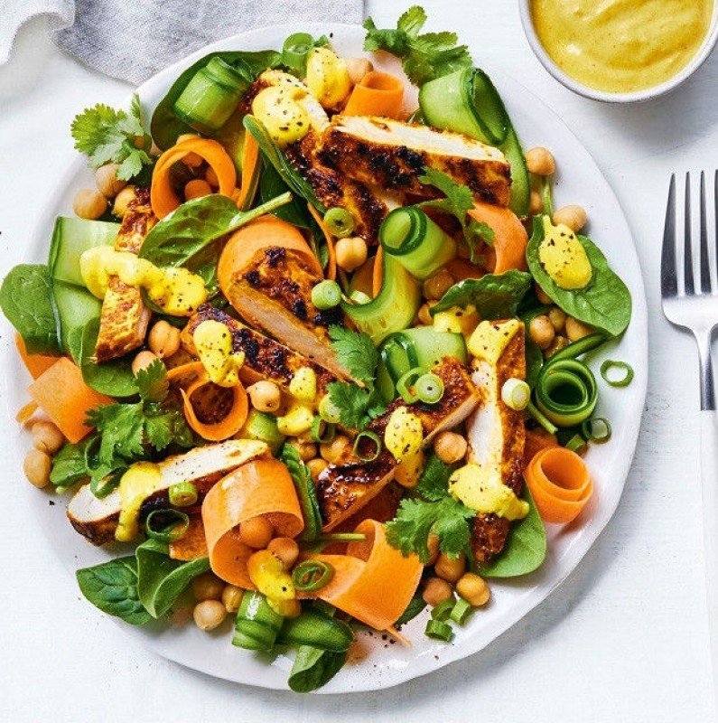 La Tikka Salade (salade verte aux blancs de poulet grillé).