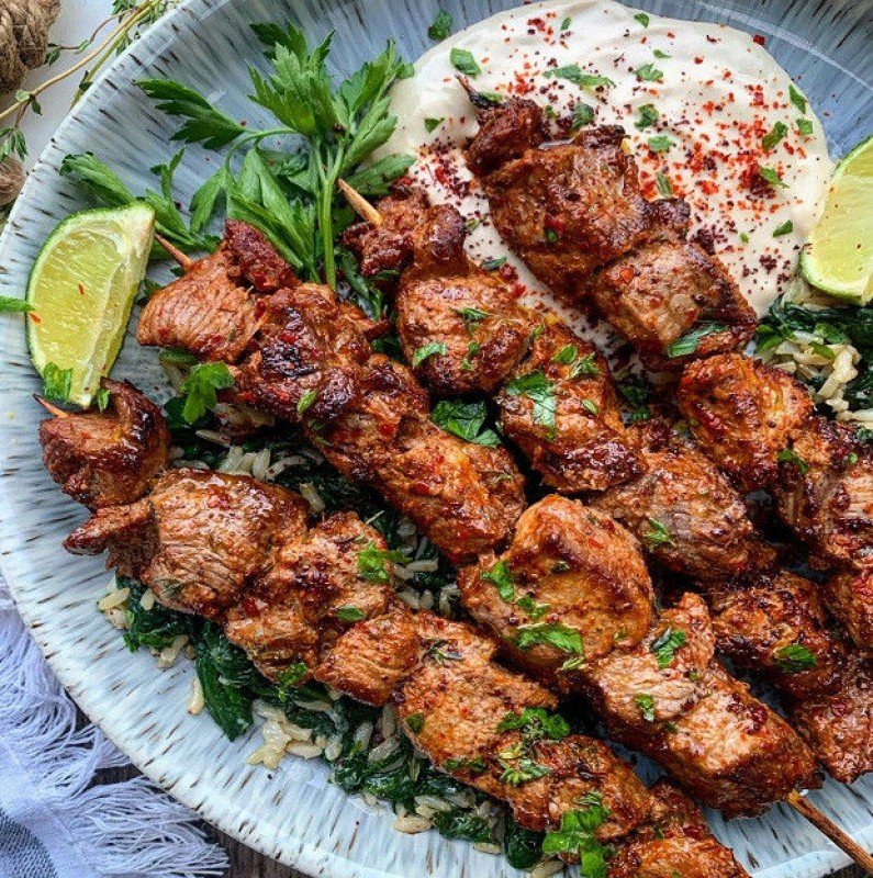 Les Shish Kebab Lamb (brochettes d’agneau haché préparées avec gingembre, ail, coriandre et de la menthe).