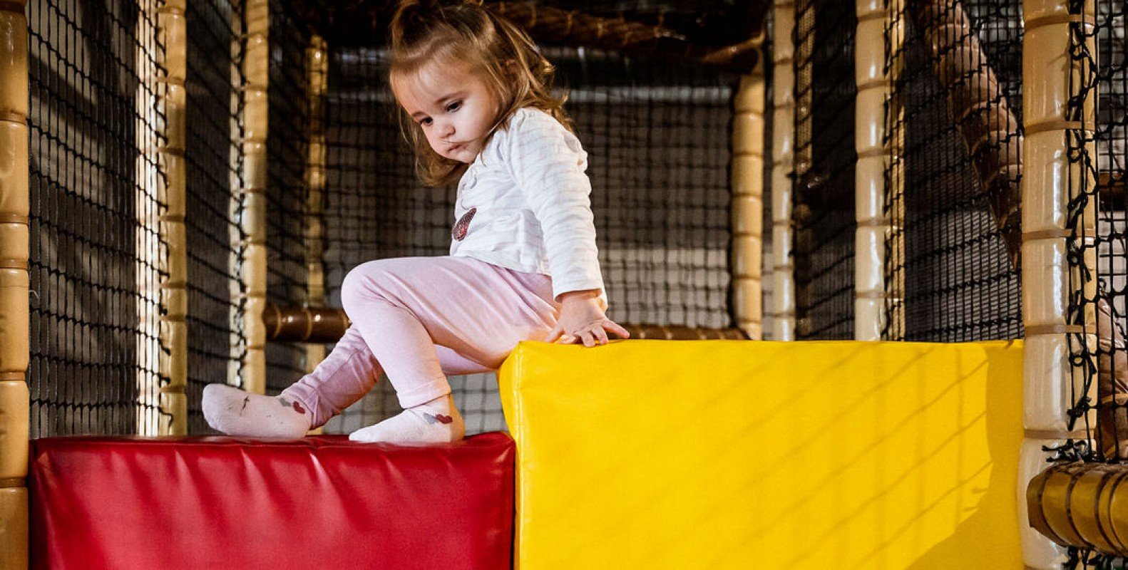 Les enfants jusqu'à 3 ans bénéficient d'un espace sécurisé avec un labyrinthe d’éveil, des piscines à balles et des jeux en mousse, et les parents peuvent les accompagner.