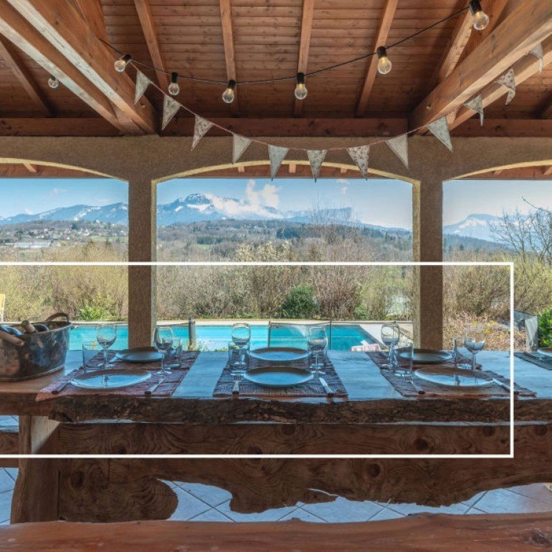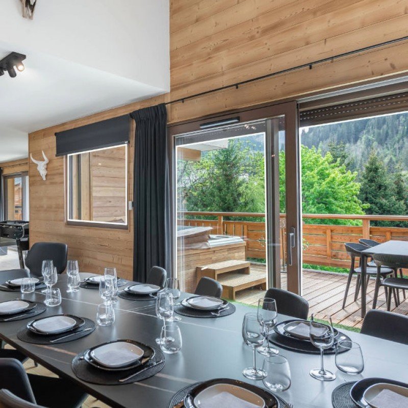 Location de Chalets de Prestige : Des propriétés d'exception pouvant accueillir jusqu'à 18 personnes, avec jacuzzi, sauna et vues panoramiques sur les Alpes françaises.