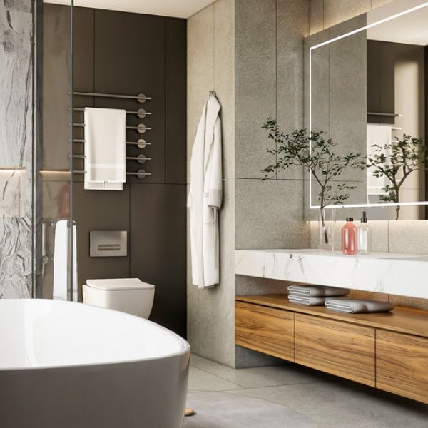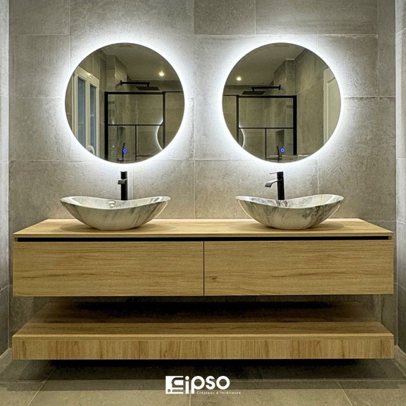 Esthétique Personnalisée : Intégration de miroirs rétro-éclairés LED, de vasques à poser ou encastrées, et de robinetterie design.